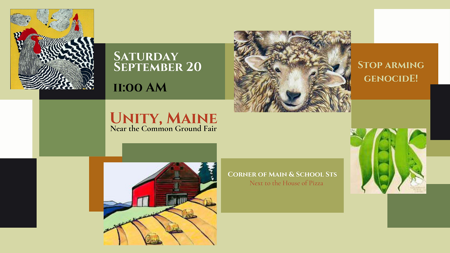 Later this month, statewide coalition protesters will assemble for the third year in a row to remind people headed to the Common Ground Fair in Unity of their responsibilities in arming genocide.