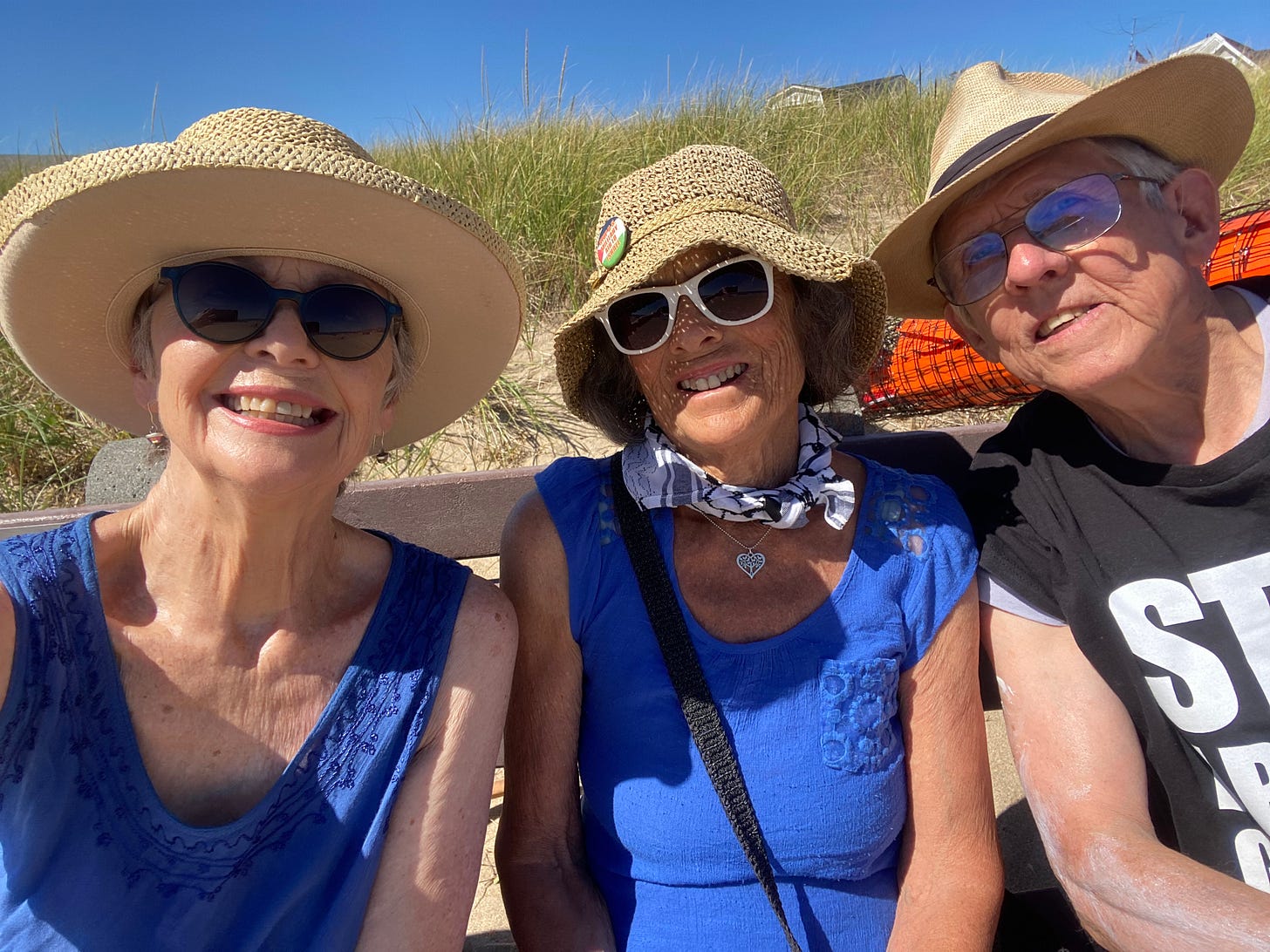 I’m unable to report on whether or not Lynn got pushback from family elders, but I saw the younger generations in her extended family (adult kids and their kids) express a lot of enthusiasm for this project. The group sat themselves down on the sand near the beach banner and more than one of them expressed admiration for Lynn’s untiring activism! She had pedaled her bike around town the day before collecting funds for food relief for people in Gaza.